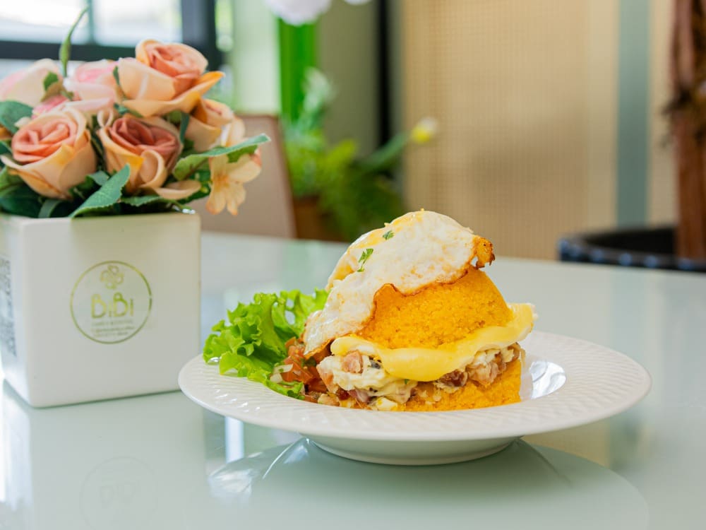 Cuscuz fofinho e quentinho, servido com bacon crocante, queijo derretido, vinagrete e ovo preparado na hora. Uma combinação irresistível, cheia de sabor e perfeita para qualquer refeição!