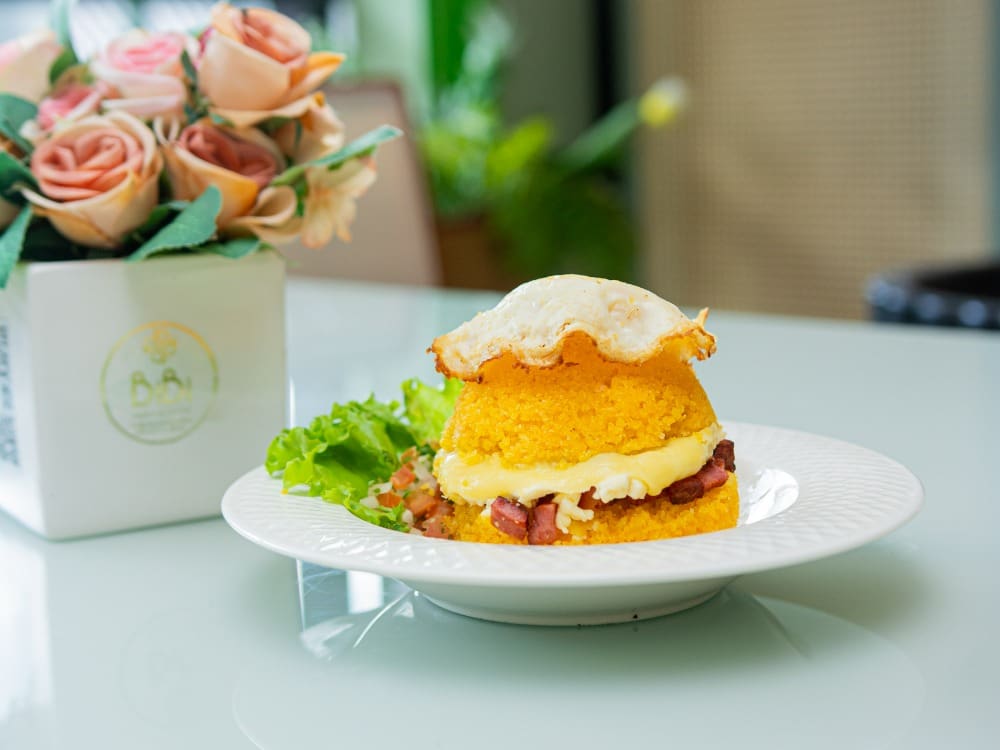 Cuscuz amarelinho no ponto certo, acompanhado de carne desfiada bem temperada, queijo derretido, vinagrete e ovo preparado na hora. Um prato completo, saboroso e com aquele toque nordestino que faz toda a diferença.