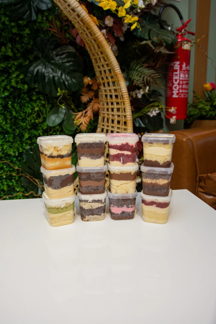 Deliciosos bolos bolos no pote, perfeitos para saborear a qualquer momento. Uma explosão de sabor em cada camada!