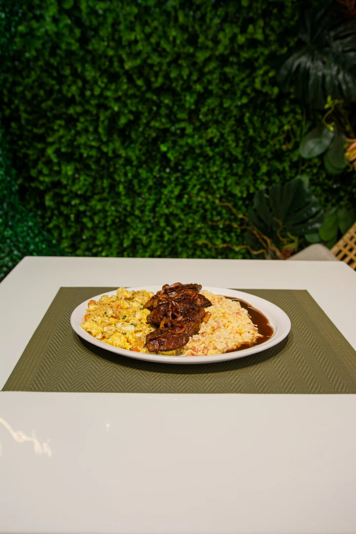 Mix de salada fresca, filé ao molho suculento, arroz piamontese cremoso, farofa crocante com bacon e ovo, e batata frita douradinha. Uma refeição completa e irresistível!