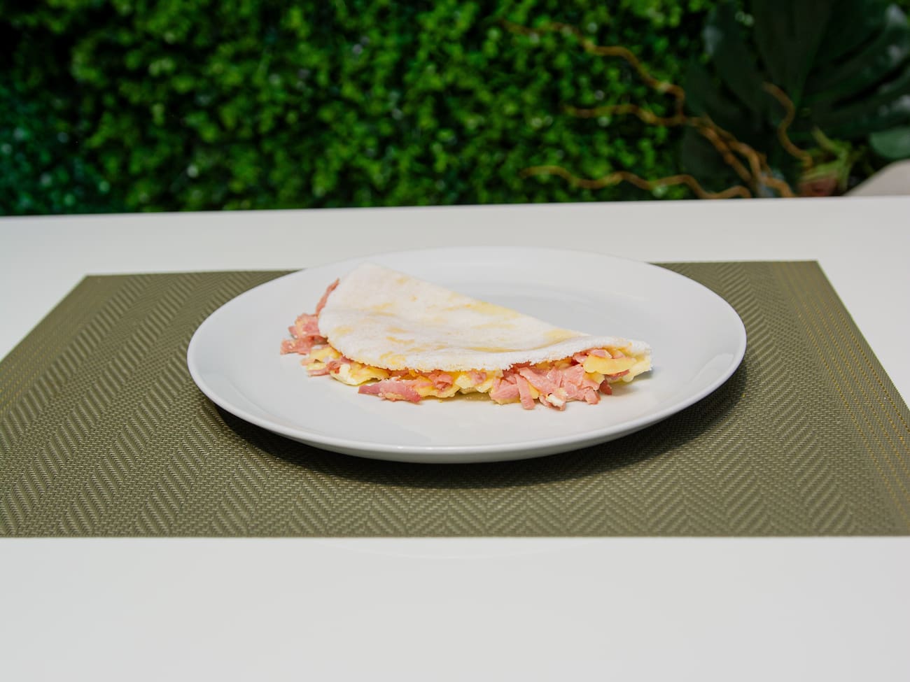 Tapioca recheada com queijo derretido e presunto saboroso.