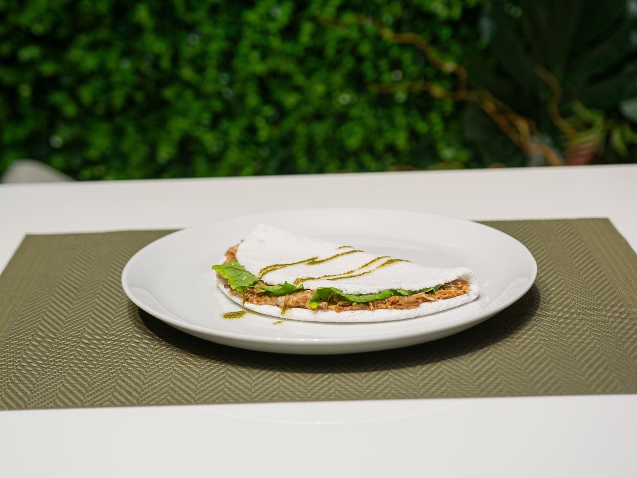 Tapioca recheada com queijo derretido e presunto saboroso.